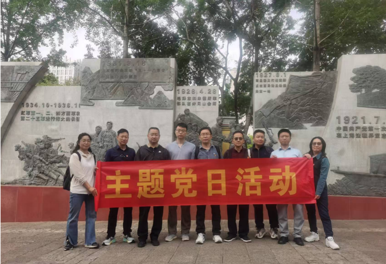 活动按照既定流程展开,包括参观了五华区党建文化主题公园,主要是两块浮雕的生动画面学习,一是中国共产党自1921年7月23日成立到1949年10月1日新中国建立的艰苦奋斗历程回顾,中间有八一南昌起义、朱毛井冈山会师、918事变、长征、中共七大等内容,另外一幅讲述了云南人民1911年10月30日重九起义开始的革命历史事件,包括有讨袁护国运动、中共云南特别支部在昆明节孝巷成立、西南联大建校及精神、一二一事件、1949年12月9日卢汉起义昆明和平解放到1950年2月20日解放军进住昆明结束。参观期间金老师为大家做了精彩的故事讲解。